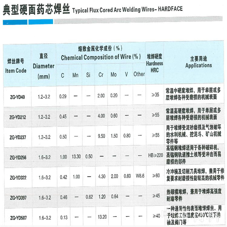 產(chǎn)品分類:典型硬面藥芯焊絲